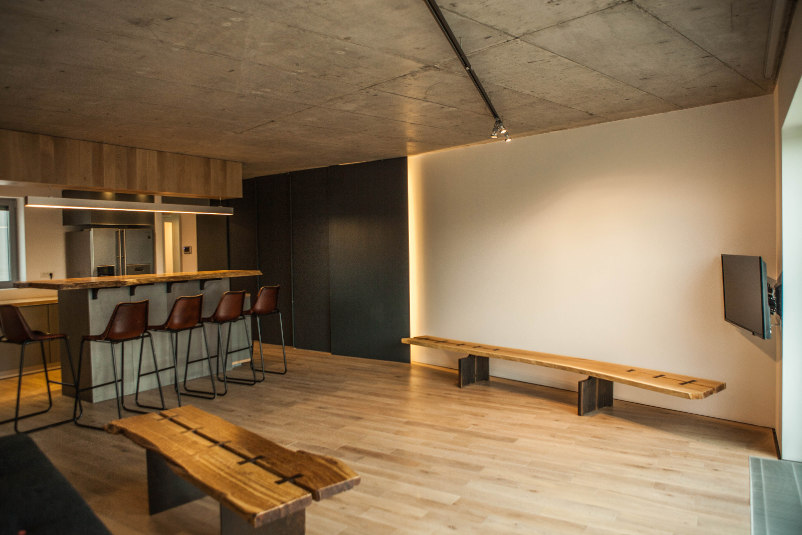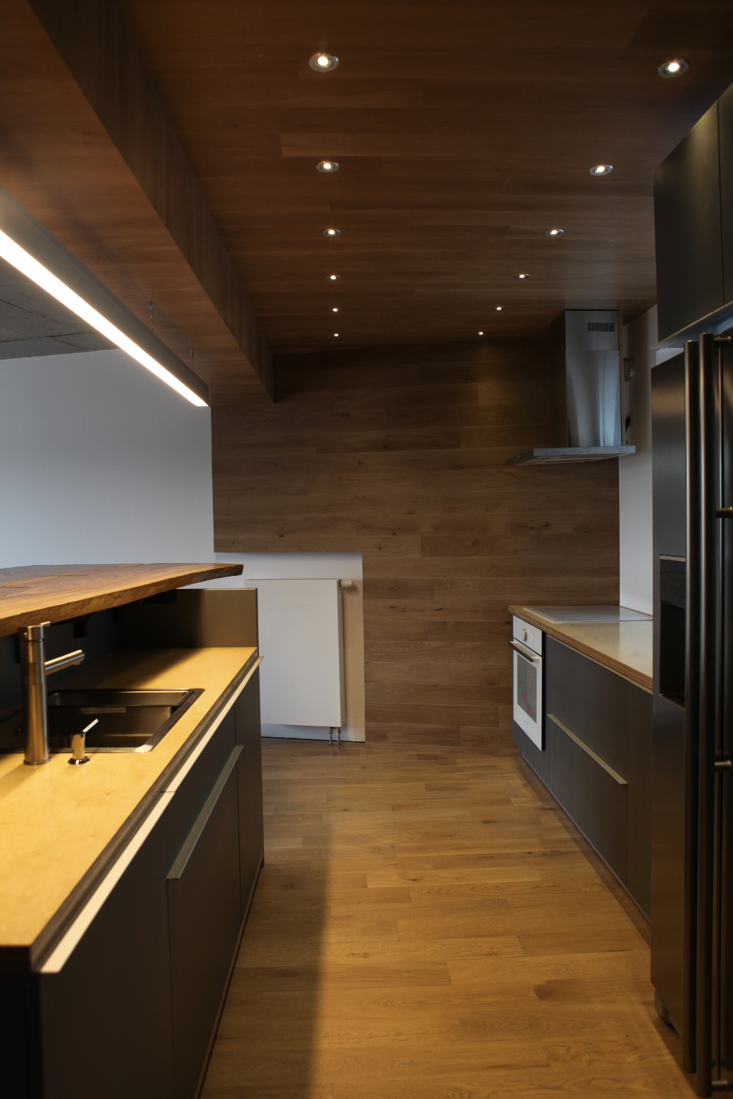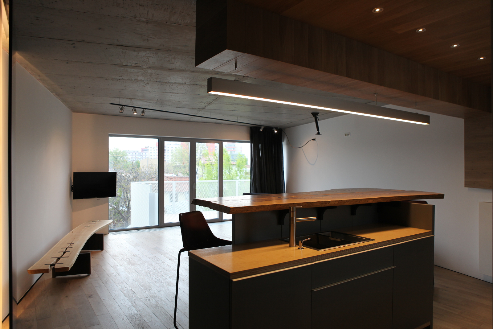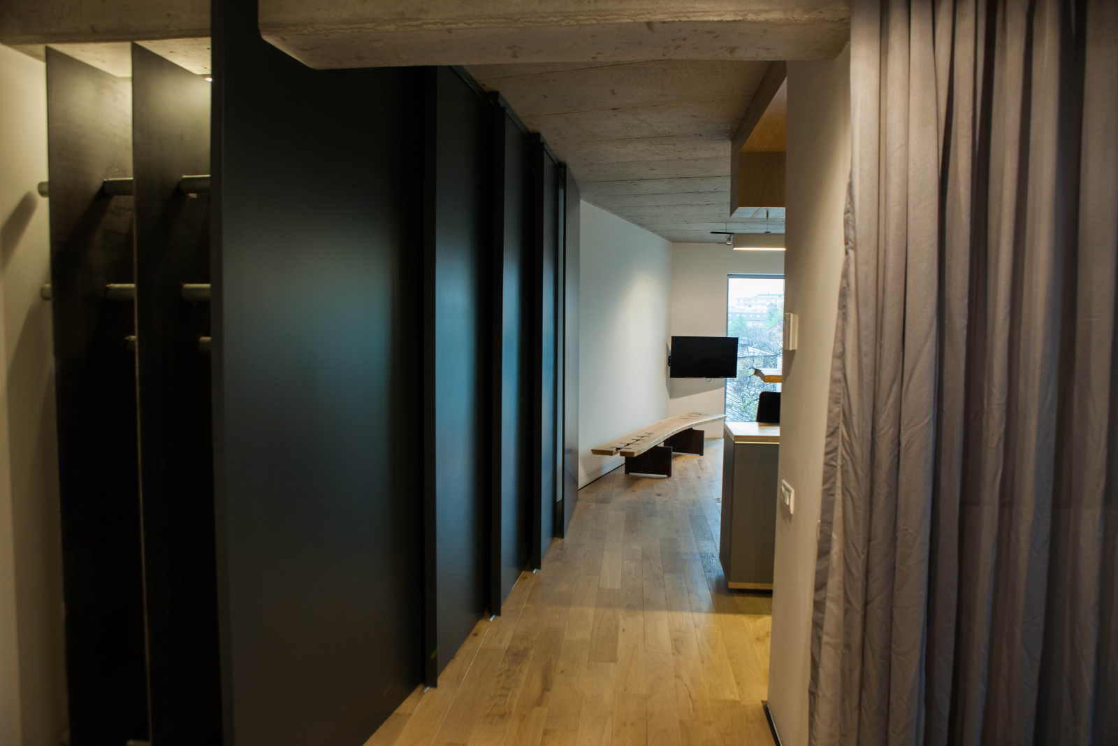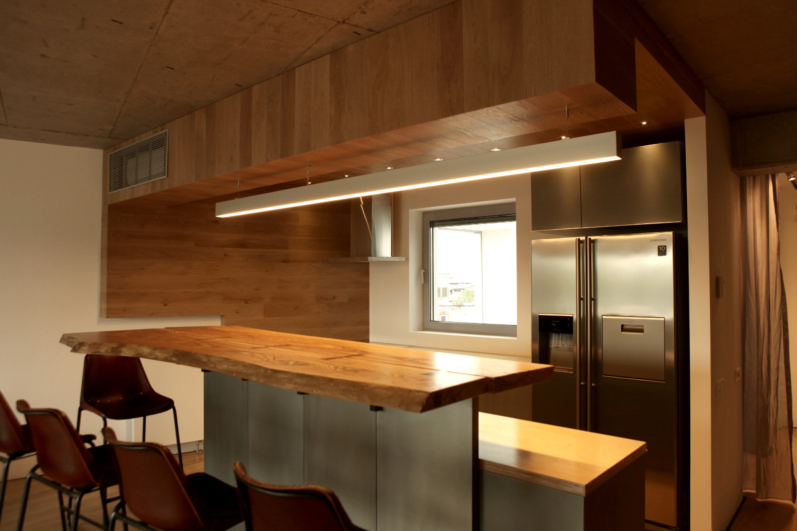 Careful detailing is balanced with the use of rough materials in order to achieve a harmonious atmosphere, a shelter for a modern life.