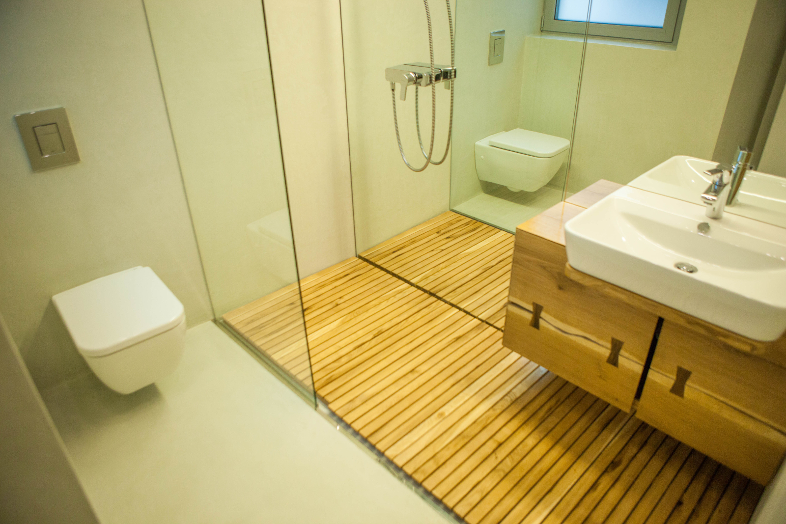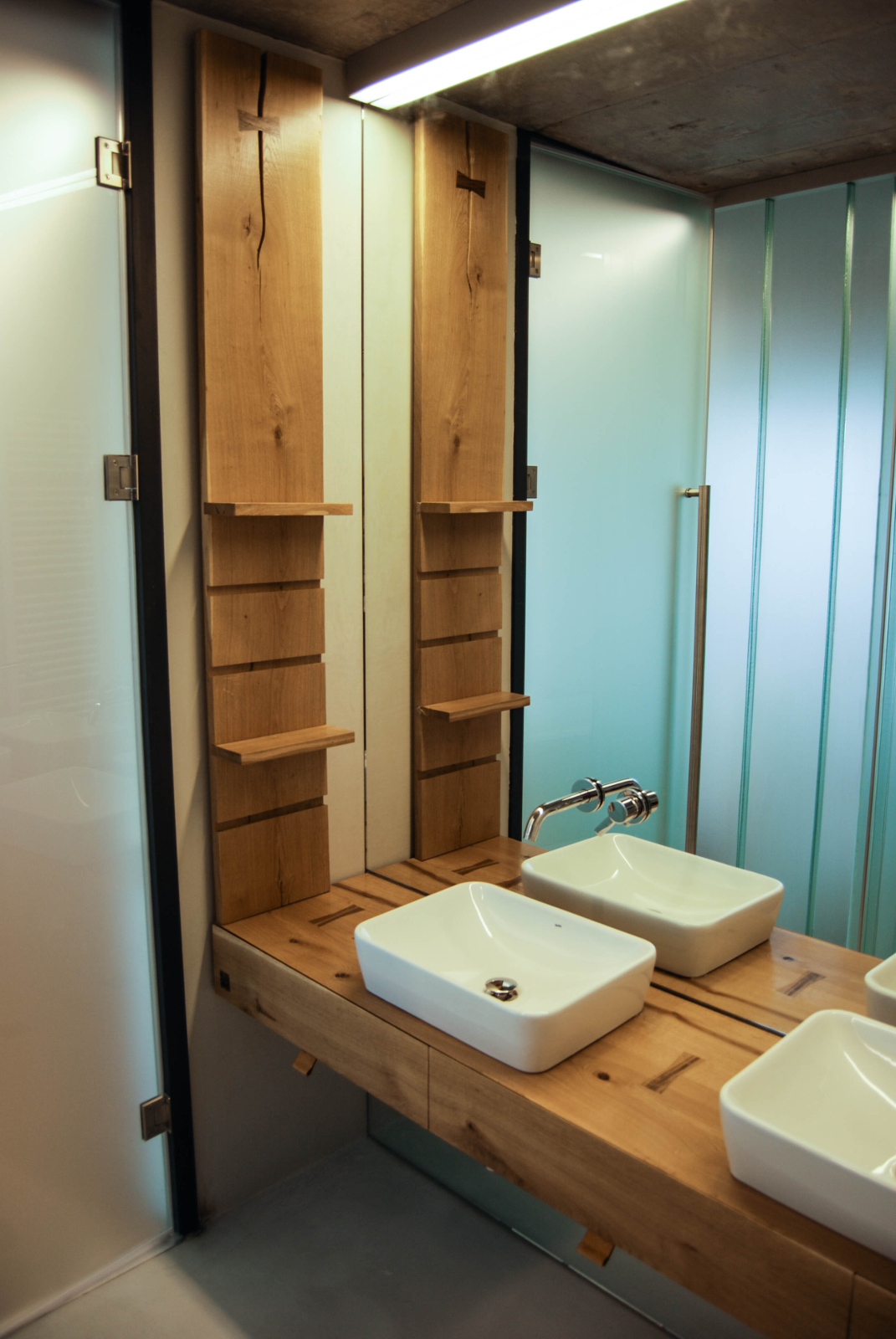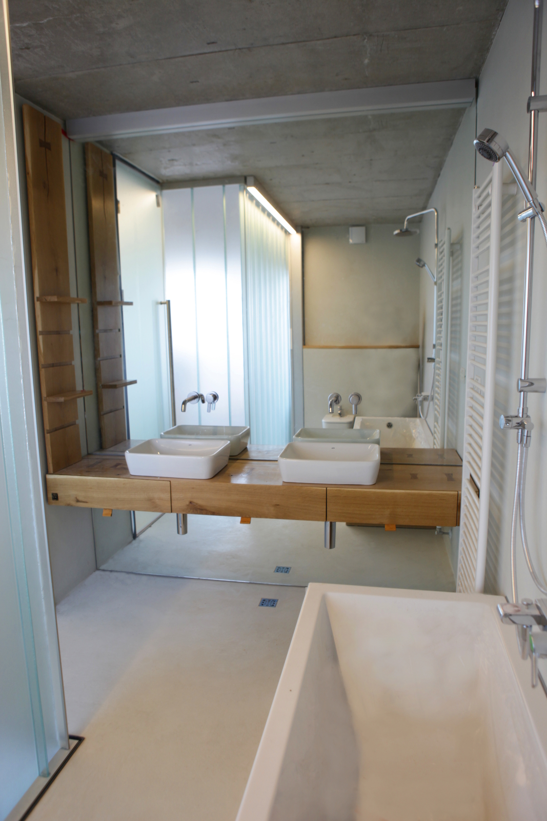Natural materials and strong colors are present throughout the interiors, with concrete, solid wood, glass and steel in a prominent position.