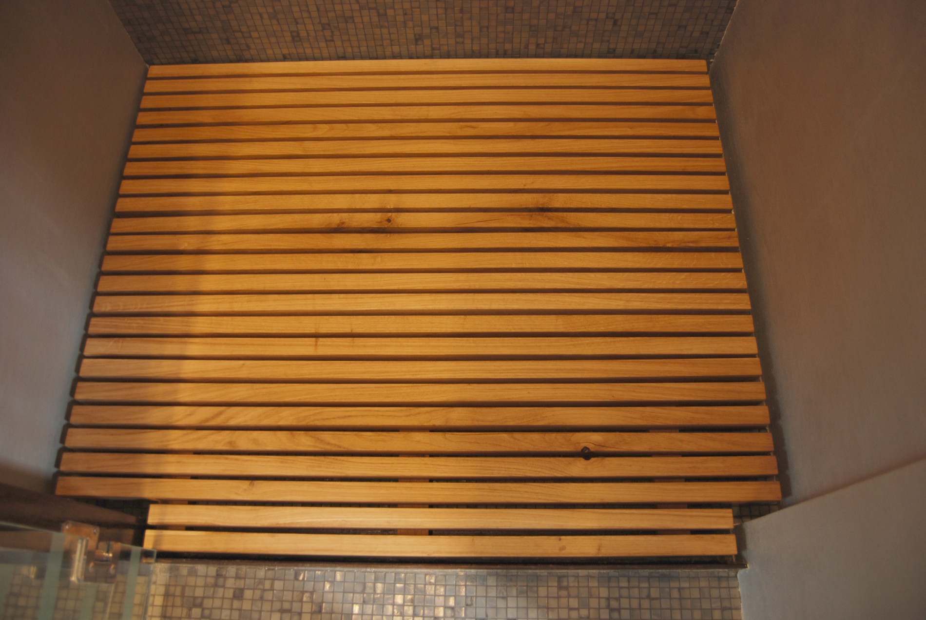 Project description: A bathroom repair job turned into a major renovation, which allowed the use of a whole range of materials, ranging from mosaics, Venetian Stucco, mirrors and natural wood.