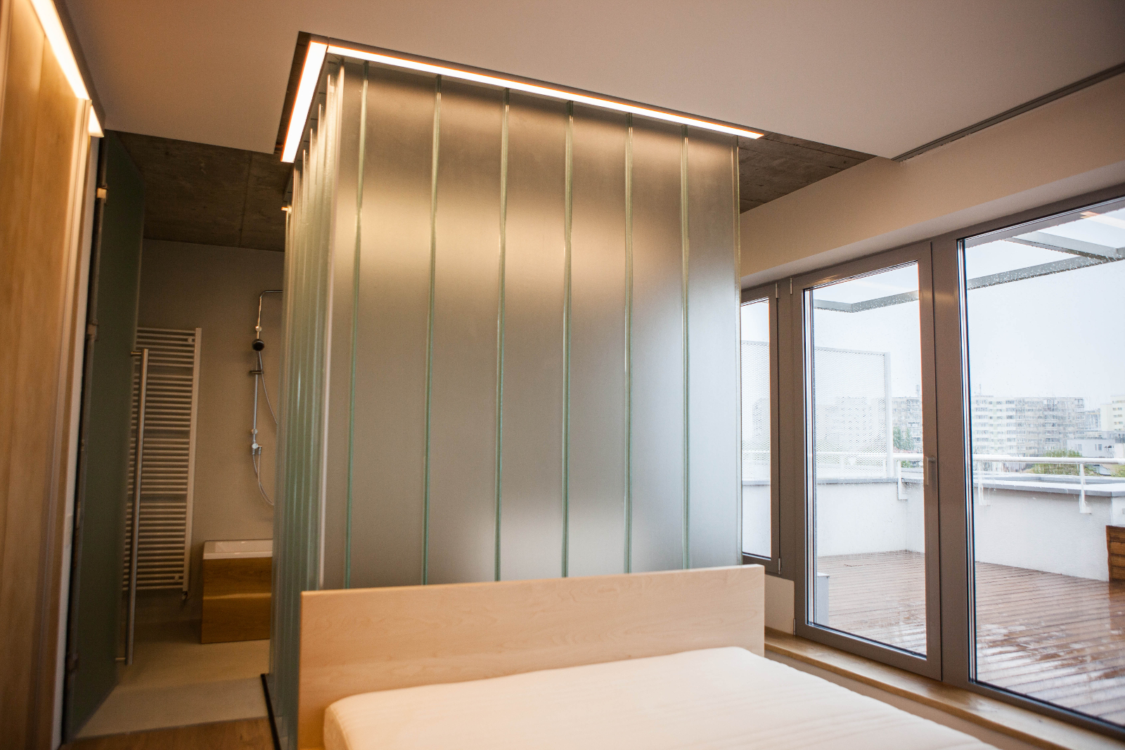 Careful detailing is balanced with the use of rough materials in order to achieve a harmonious atmosphere, a shelter for a modern life.