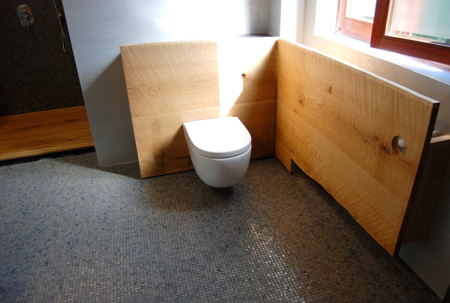 Project description: A bathroom repair job turned into a major renovation, which allowed the use of a whole range of materials, ranging from mosaics, Venetian Stucco, mirrors and natural wood.